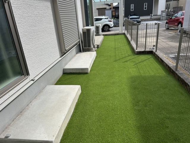 尾張旭市 人工芝と立水栓+パン ODターフneo 25mm。ニッコー:立水栓(スクエアパン+コロル)