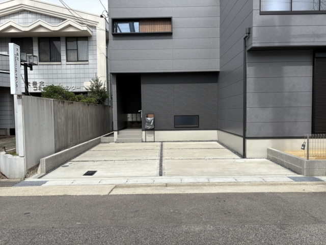 • <2台用カーポート> 三協アルミ スカイリード5854(奥行5.8m×間口5.4m)梁8.0m・梁5.4m。本体:ブラック、屋根材:ブラックポリカ