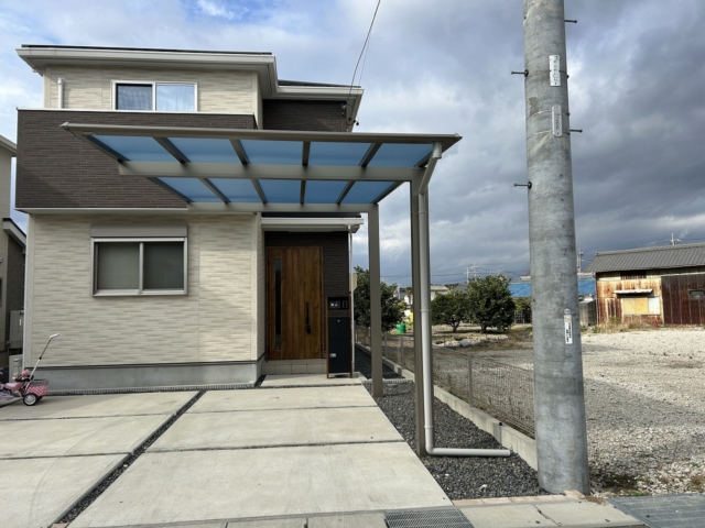 尾張旭市 1台用カーポート 三協セルフィ 5824 H25 ツートンカラー 柱・梁色ブラック/屋根枠色サンシルバー